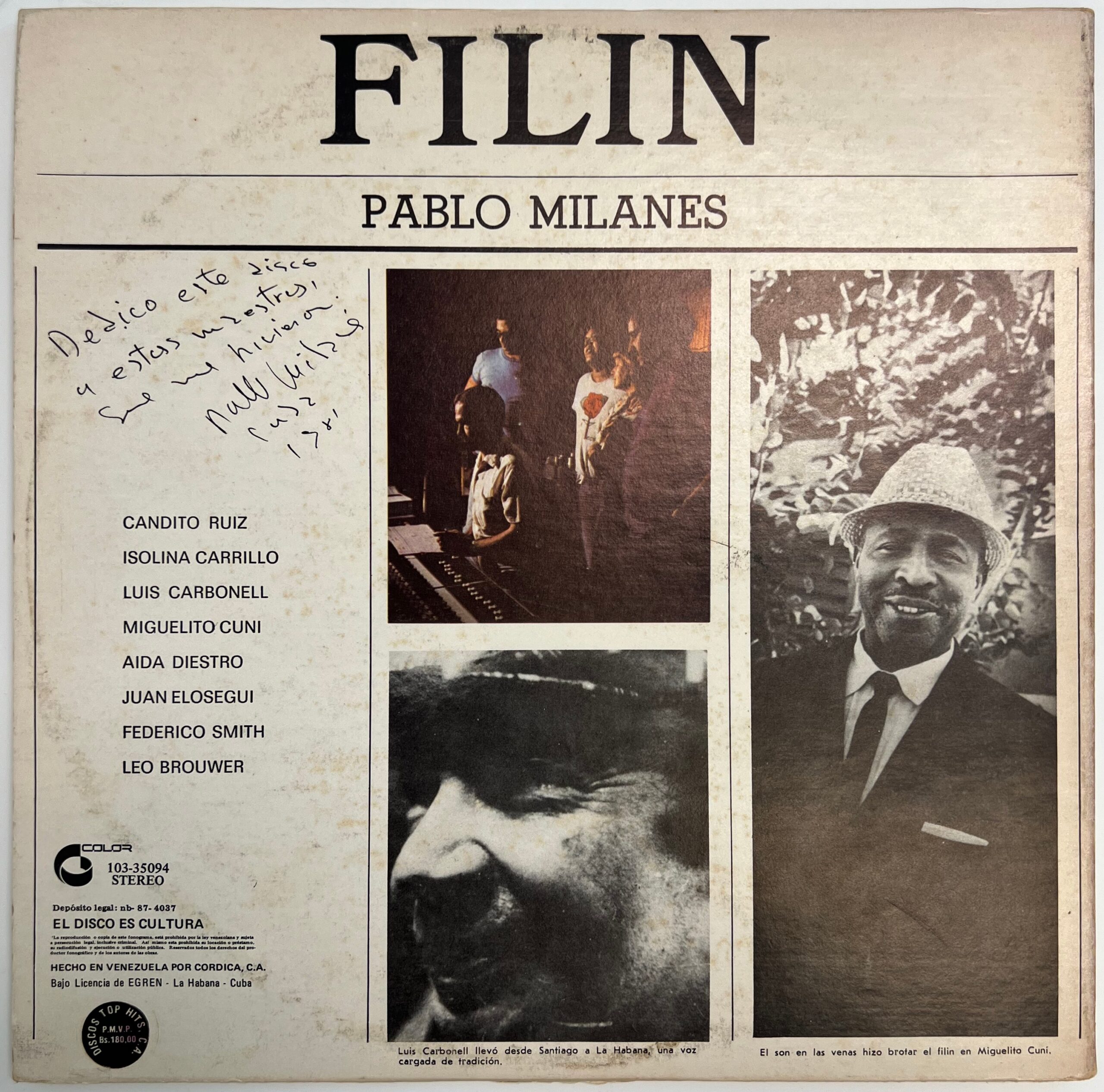 Previous Product Next Product LP – Pablo Milanés – Filin $15.00 1 in stock LP - Pablo Milanés - Filin quantity Add to cart Category: LP's Description Description LP – Pablo Milanés – Filin Condición: AS-IS Related products Add to cart LP'sLP – Julio Ángel y Trío Borinquen – Cita con el Recuerdo $30.00 Add to cart LP'sLP – El Gran Combo – Tangos $25.00 Add to cart LP'sLP – Gilberto Monroig – Añoranzas y Quimeras $15.00